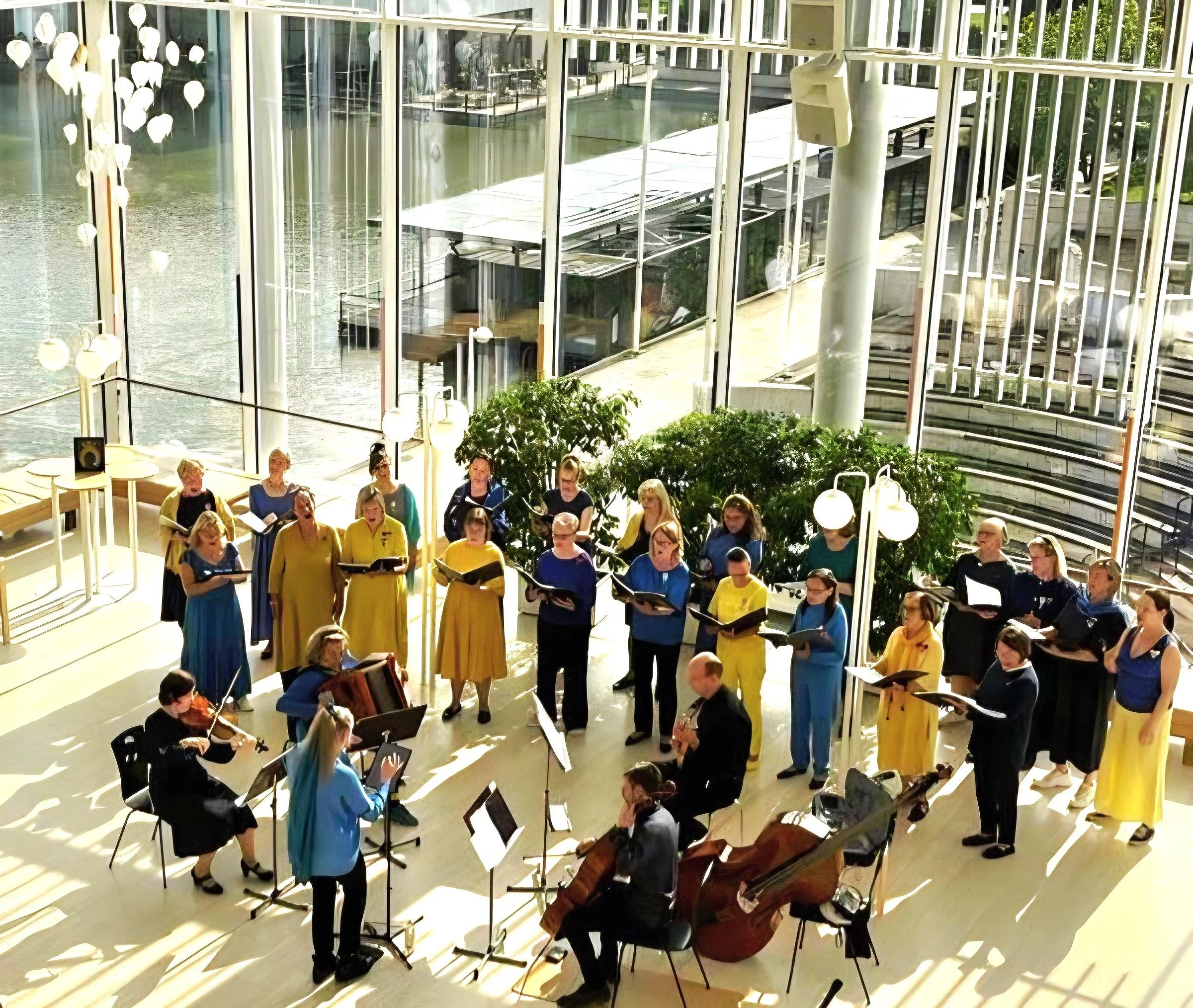 Anneli Julén johtaa Timoteita Lopelta, Naiskuoroliiton eduskuoro Louhea, Kamarikuoro Gaudete!:a, Hämeenlinnan Mieskuoroa sekä Tampere Eesti Koor Tammest.